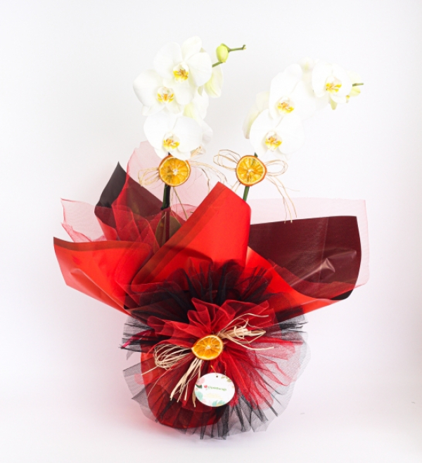 İthal Beyaz Çift Dallı Orkide Butik Tasarım Sersi
